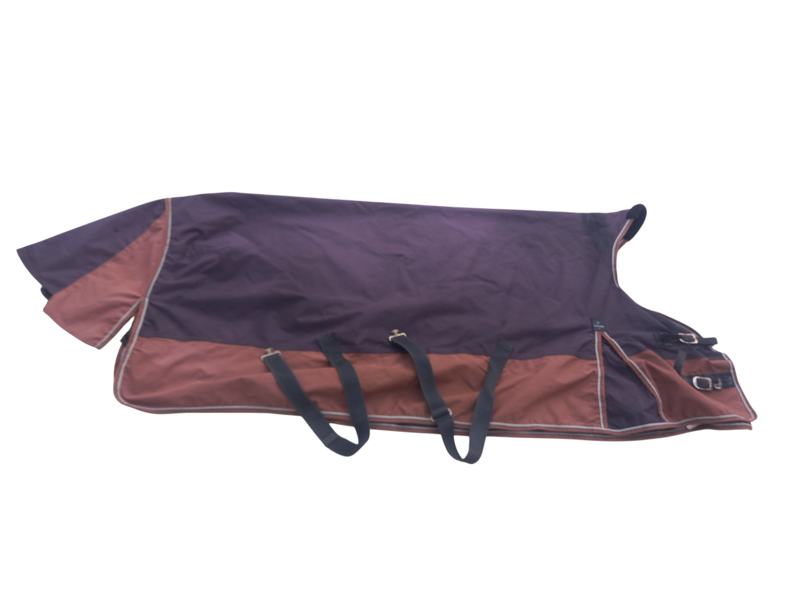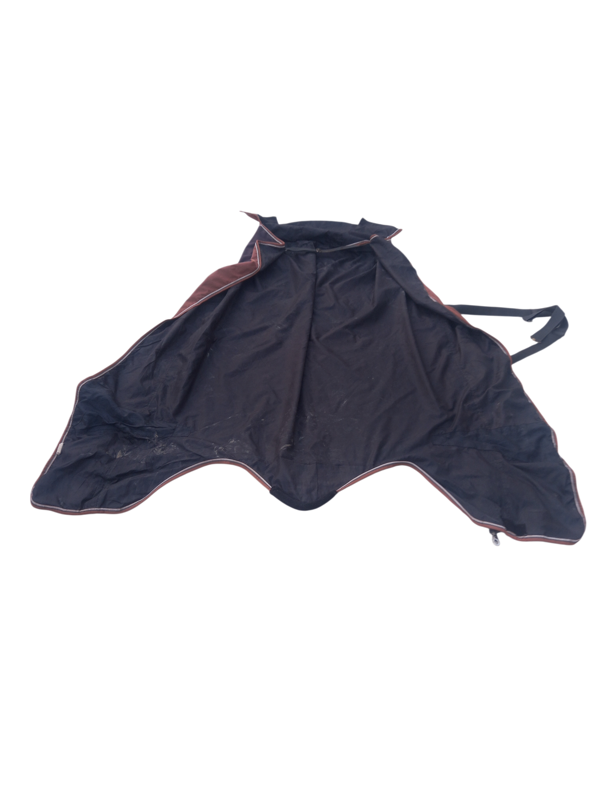 Couverture imperméable, pour tenir votre cheval au sec sous la pluie. Coupe adaptée à un cheval standard. A été nettoyée, désinfectée et réimperméabilisée.