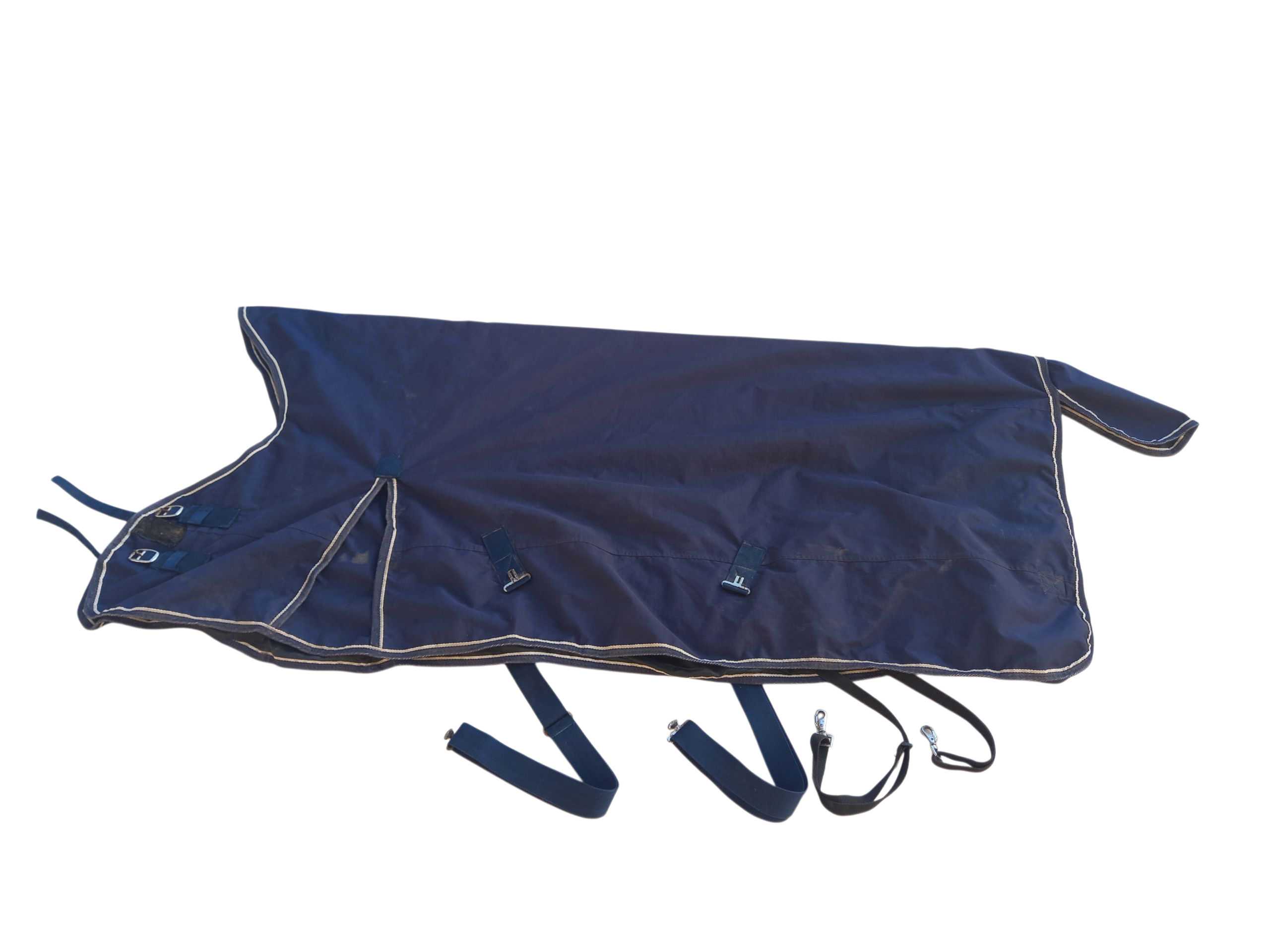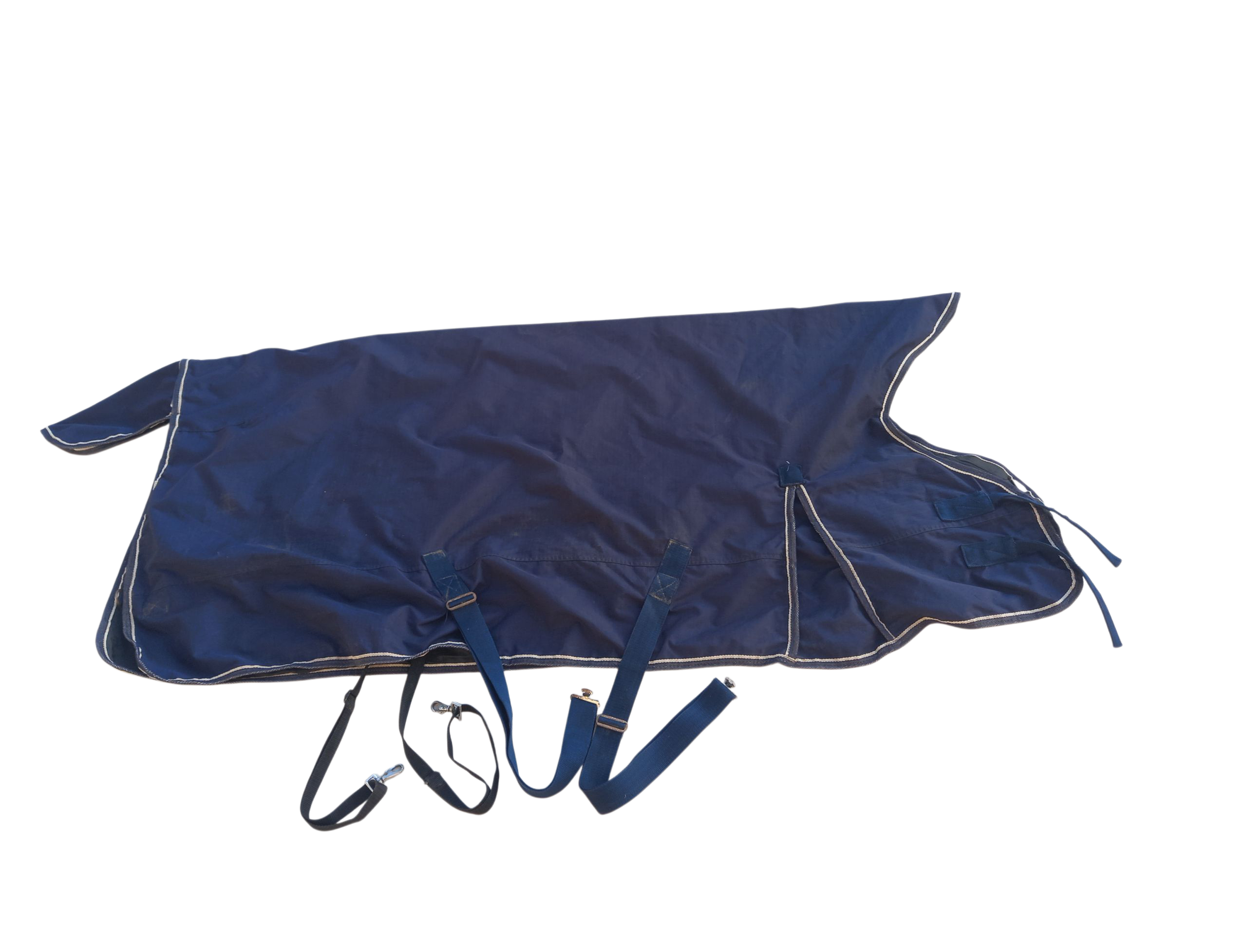 Couverture imperméable, pour tenir votre cheval au sec sous la pluie. Coupe adaptée à un cheval standard. A été nettoyée, désinfectée et réimperméabilisée.