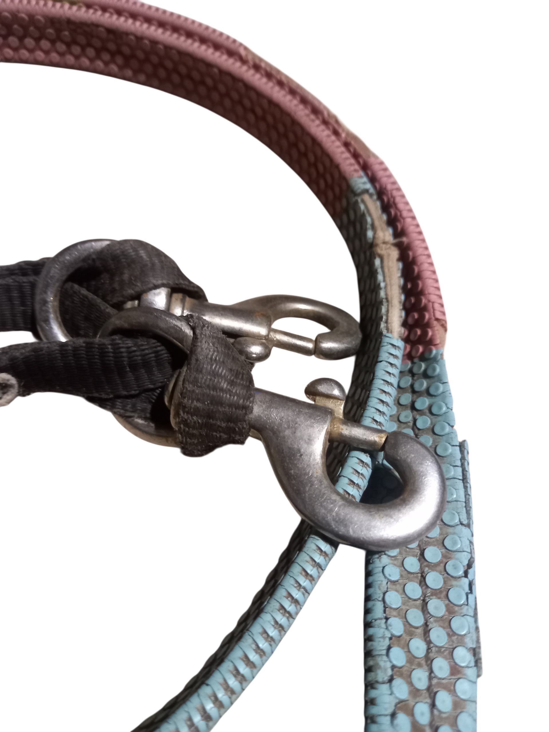 Revêtement caoutchouc qui s’effrite, dû à une utilisation normale, rênes fonctionnelles.