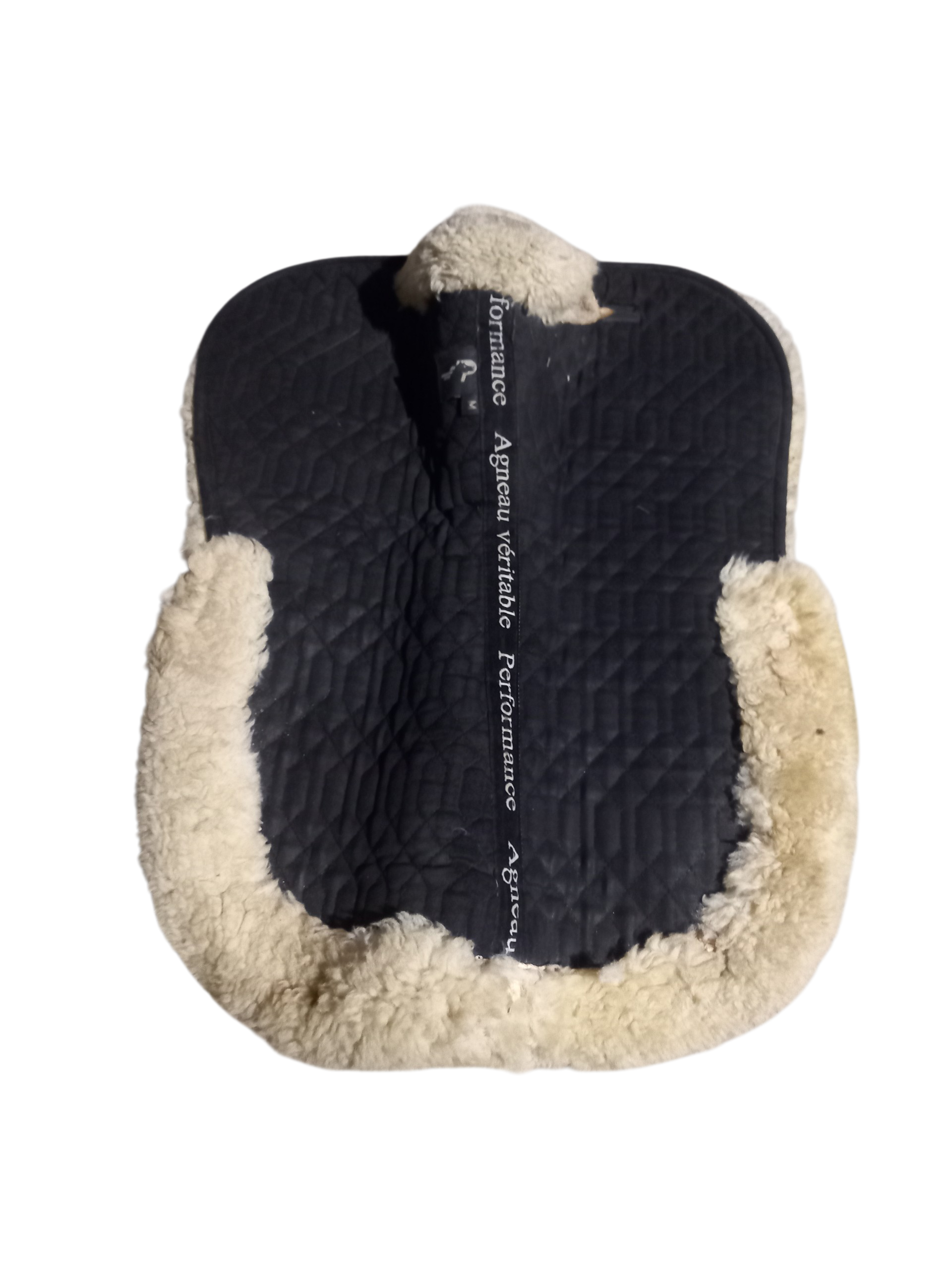 Amortisseur en fourrure d’agneau véritable, conçu pour amortir et repartir la pression du poids du cavalier.
